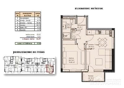 Квартира расположена на 7-м этаже современного жилого комплекса, расположенного в очень коммуникативном районе. Комплекс обеспечивает быстрый доступ к центральной части города и другим районам Варны.