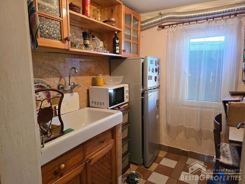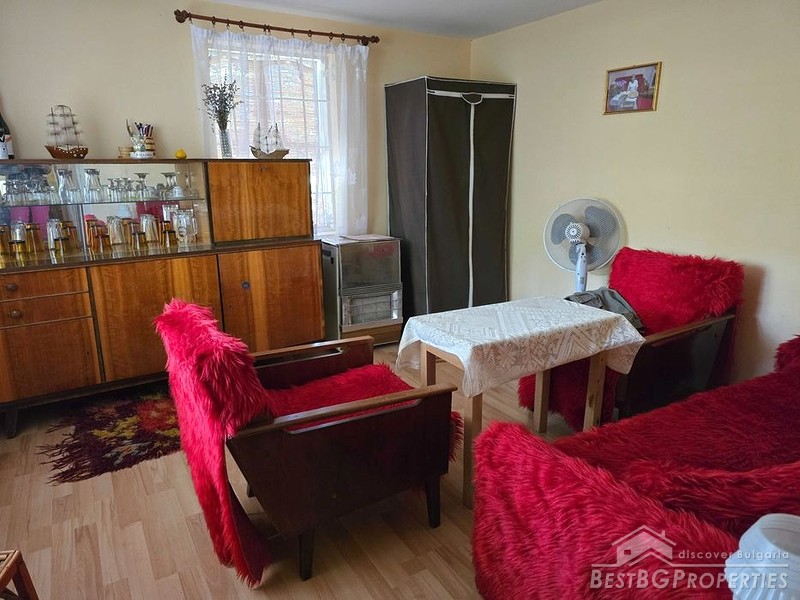 Дом общей жилой площадью около 50 кв. м с ухоженным двором площадью 600 кв. м. Недвижимость находится в хорошем состоянии и полностью пригодна для проживания, предлагая идеальные условия для постоянного проживания или сезонного использования.