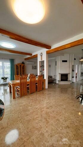 Недвижимость продается вместе с ухоженным и просторным двором общей площадью 1300 кв. м. В саду растут фруктовые деревья, а также есть летняя кухня и мастерская площадью 24 кв. м, которая не включена в общую жилую площадь дома. Также имеется бассейн.