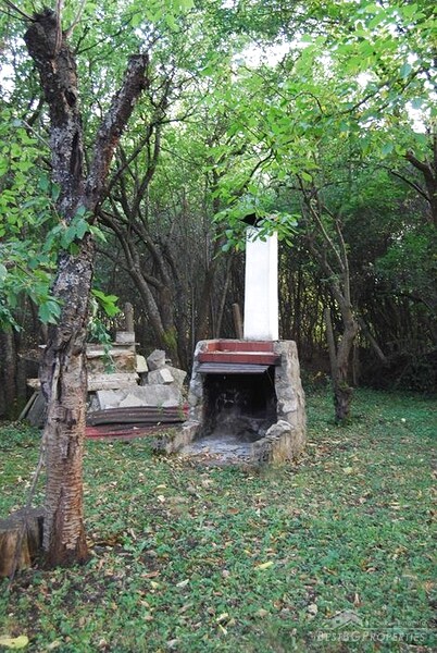 Участок площадью 1250 кв. м., состоящий из двух смежных участков, находящихся в ведении муниципалитета, расположен на ровной, ухоженной территории. Во дворе растут фруктовые деревья, есть открытый камин и туалет. Дополнительные постройки во дворе включают мастерскую и кладовую.