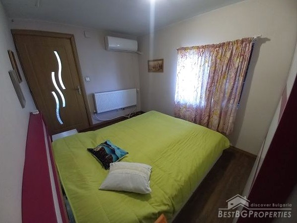В доме есть кондиционер и локальное отопление – на дровах или электричестве. В доме заменены оконные рамы, новая внешняя изоляция, полы – ламинат и терракота, новая ванная комната, новые межкомнатные двери и меблированная кухня. Дом продаётся с частью мебели.